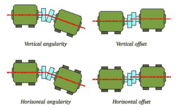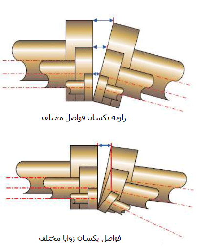 - عدم هم محور بودن محورهای تقارن دو دستگاه یا ماشینیکه با یکدیگر کوپله می شوند