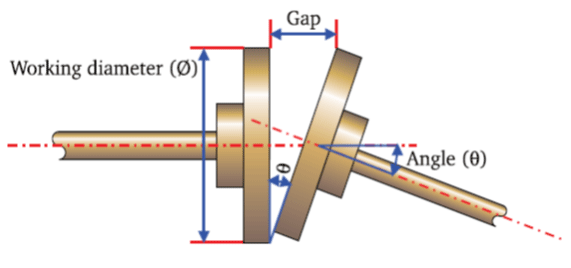 ارتباط بین قطر کوپلینگ زاویه نا هم محوری و فاصله بین دو بخش کوپلینگ