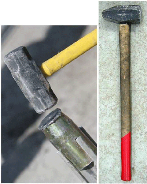 هنگام استفاده از یک چکش سنگین یا پتک همیشه از لوازم ایمنی فردی (عینک ایمنی و دستکش) مناسب استفاده نمائید. همیشه قبل از شروع کار دسته پتک را به با دقت بررسی نمائید تا شکستگی یا ترک نداشته باشد. برای دسته های خراب، شکسته یا ترک بررسی کنید هرگونه چربی یا روغن از سطح دسته و پیشانی پتک تمیز کنید. دست ها را از جسمی که در حال ضربه زدن به آن هستید دور نگه دارید