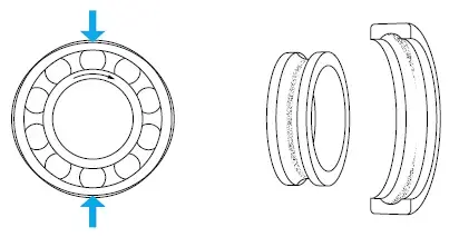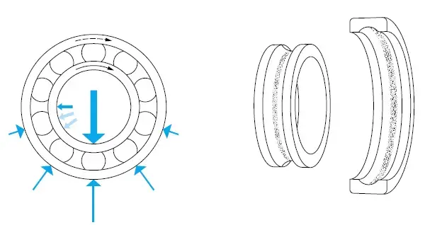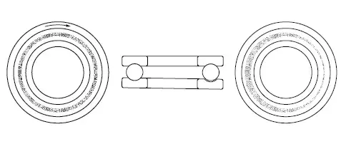 - الگوی مسیر یکنواخت در عرض، در سراسر دور گسترش یافته است از مسیر هر دو حلقه و سمت چپ در بلبرینگ یا بیرینگ جابجا شده.
