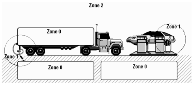 محیط هایی که در آن ها به طورمعمول گاز قابل اشتعال وجود دارند یا ممکن است به وجود آیند . مانند محیطی که بخارات برخی حلال ها (استن،بنزن،و....) و برخی گازها (مانند پروپان) وجود دارد.