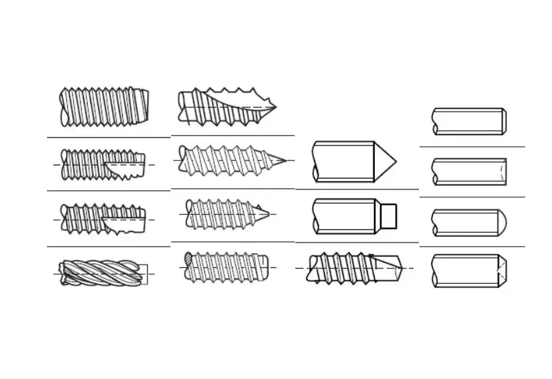 در شکل انواع مختلف نوک پیچ نشان داده شده است.
