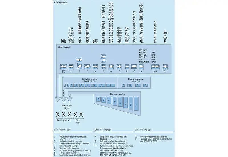 نمودار سیستم شماره فنی برای بیرینگ ھا و رولربیرینگ ھای استاندارد (متریک)