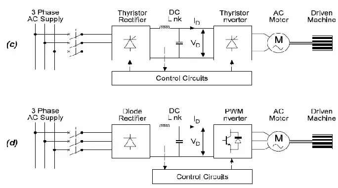 یکسو ساز تمام موج توسط یک منبع متناوب تکفاز یا سه فاز تغذیه شده و خروجی آن خازن های اتصال به DC Link را تغذیه می نماید. وظیفه خازنها تثبیت ولتاژ ورودی اینورتر ، کاهش رایپل یکسوساز و تامین انرژی درایو در وقفههای کوتاه تغدیه است این شرایط زمانی که اینورتر بار خروجی تغذیه می کند باعثنوسان بار در یکسو ساز شده که بر روی سایر قسمت مدار درایو اثر خواهد گذاشت .