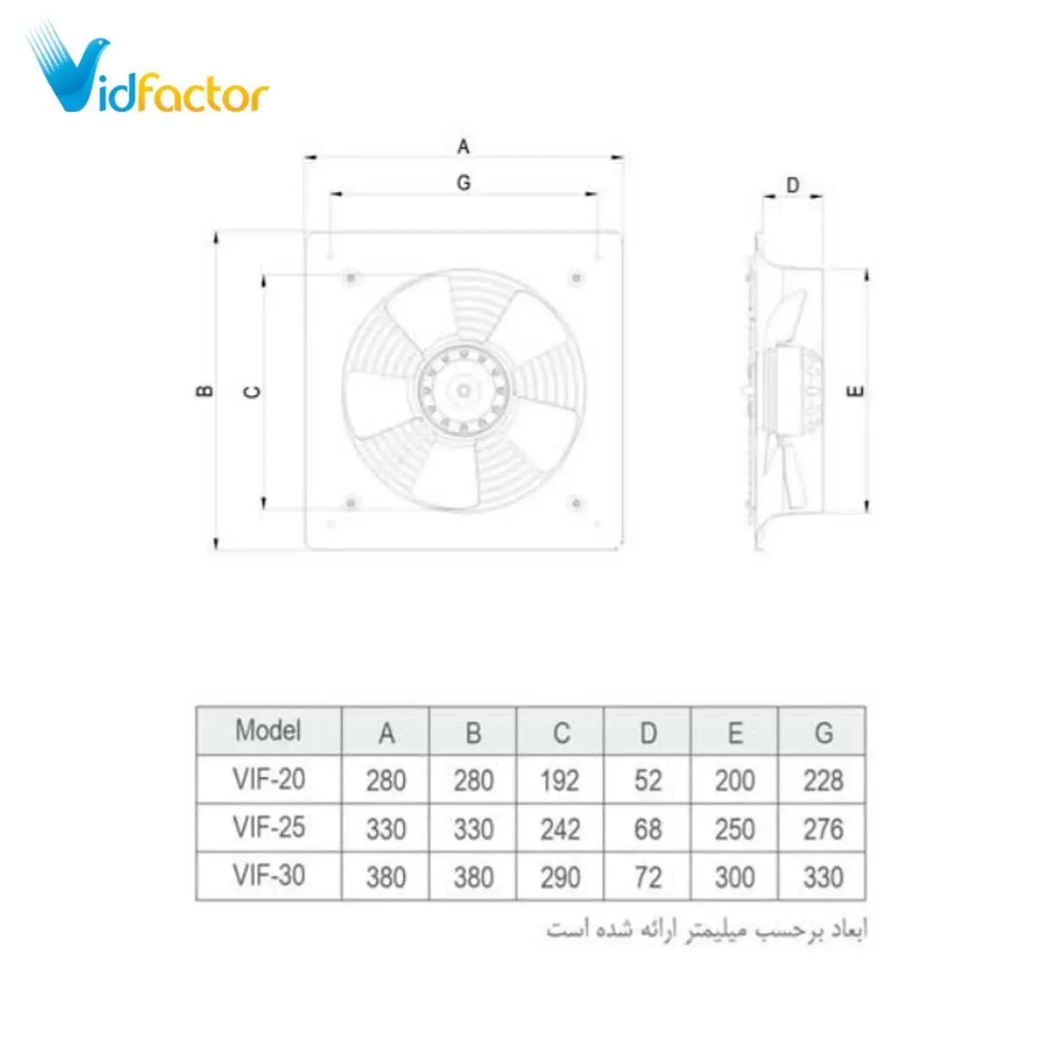 هواکش صنعتی 20 سانت آکسیال طرح آلمان (چهارگوش)دمنده VIF-20V2S