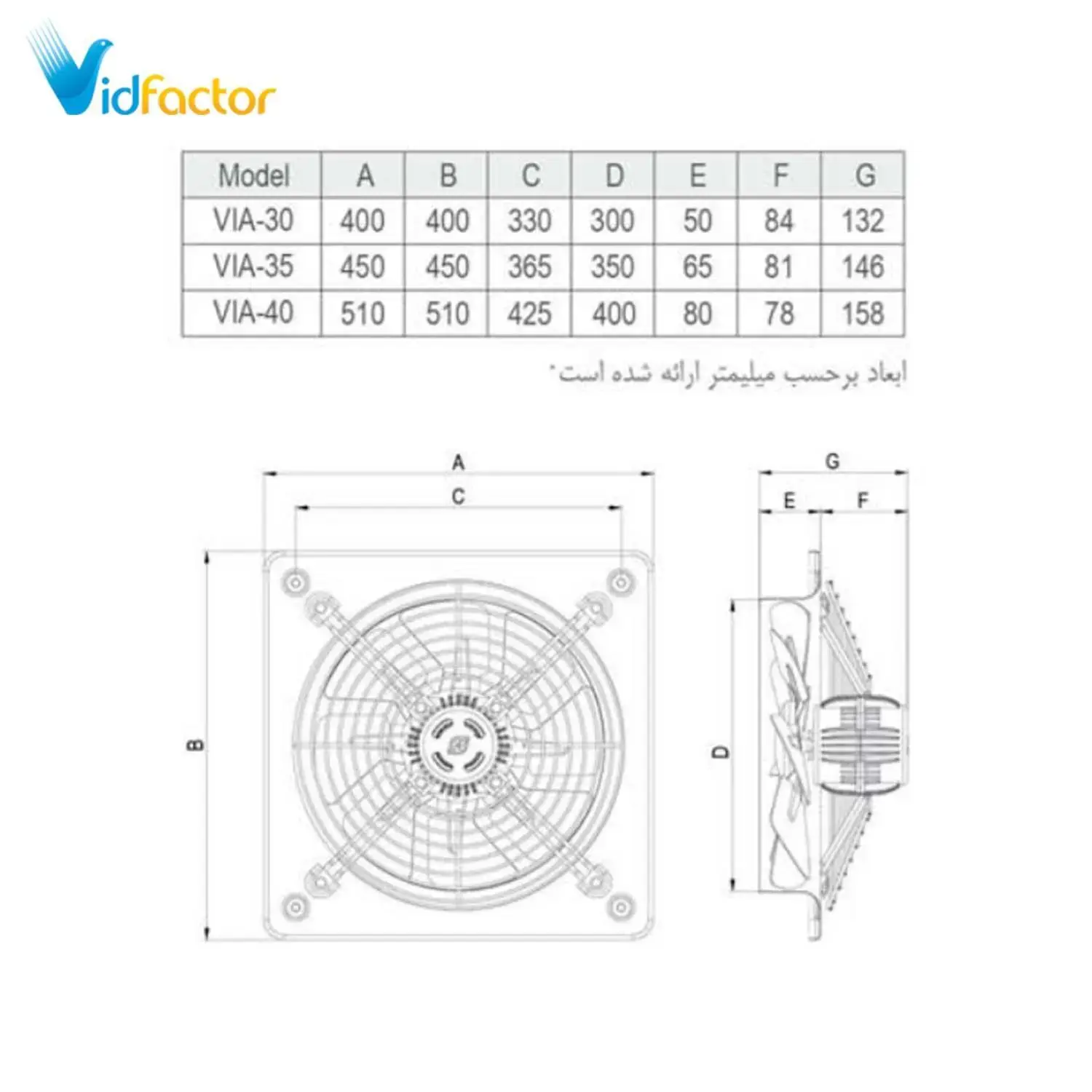 هواکش صنعتی 30 سانت فلزی با پروانه فلزی دمنده VIA-30C4S