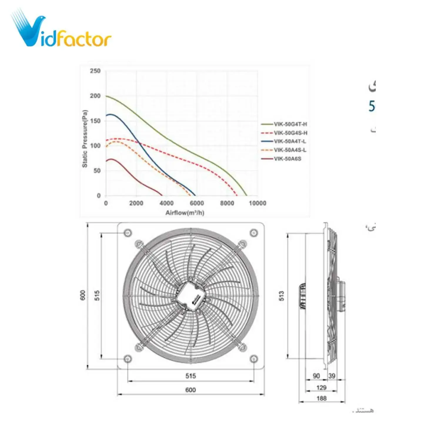 هواکش صنعتی 50 سانت ایلکا هفت پر فلزی دمنده VIK-50A6S