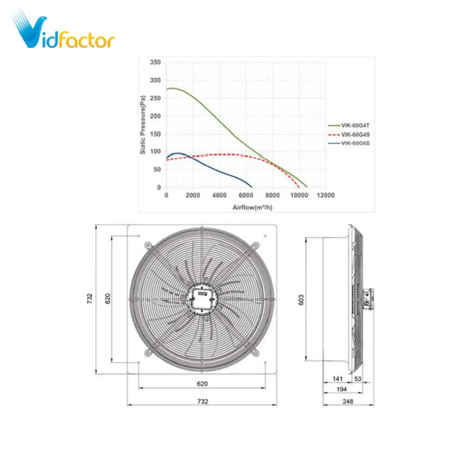 هواکش صنعتی 60 سانت ایلکا هفت پر فلزی دمنده VIK-60G4S