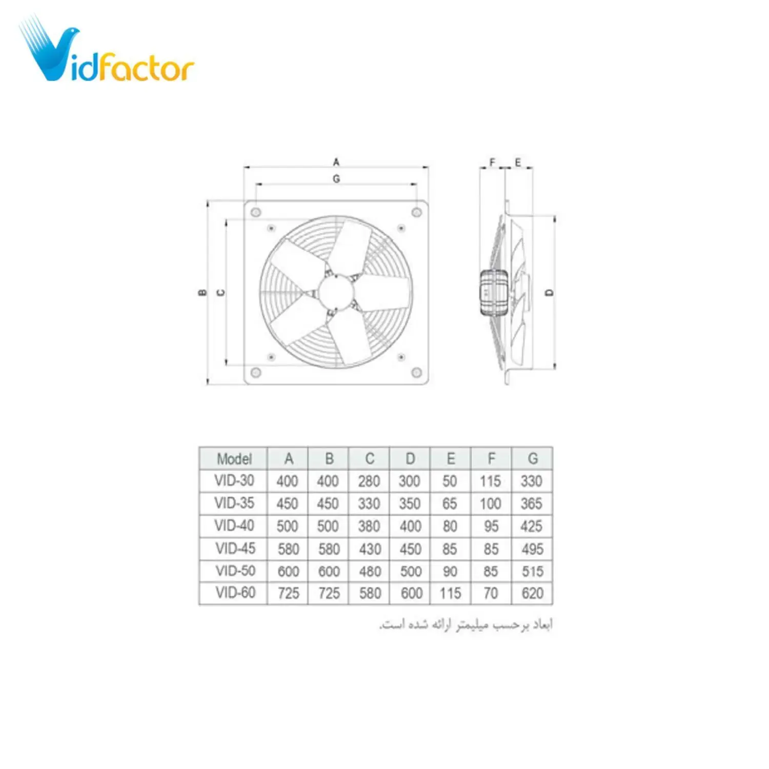 هواکش صنعتی 50 سانت سبک فلزی دمنده VID-50D4S